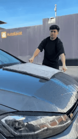 - Abre la toalla y colócala sobre la superficie húmeda del auto.