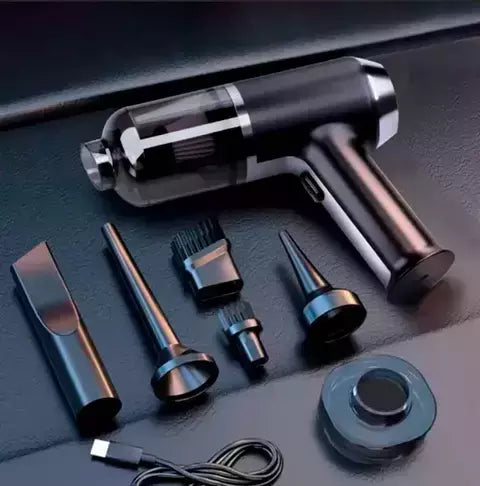 - Aspiradora Inalámbrica: Voltaje 5V, potencia 120W, batería 1000 mAh, impermeable IPX7, incluye pico de soplado, boca larga plana y cepillo.